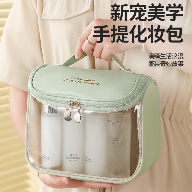 حقيبة مستحضرات تجميل محمولة شفافة من البولي يوريثان، حقيبة تخزين للسفر، حقيبة مستحضرات تجميل جديدة مقاومة للماء، سعة كبيرة للنساء