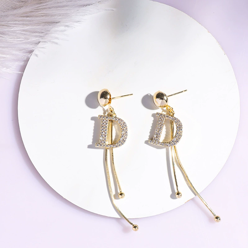 أقراط بادو على شكل حرف ألماس كامل بإبرة فضية عيار 925