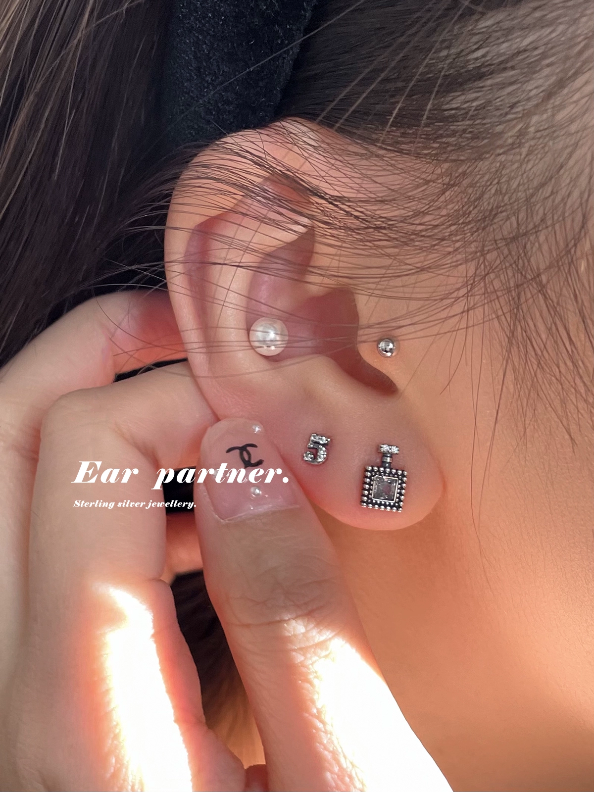 إبرة فضية شخصية مجوفة غير متناظرة على الطراز الكوري S925