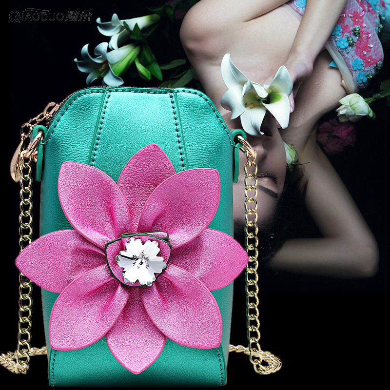 Qiaoduo حقيبة الهاتف المحمول الإناث 2024 الربيع حقيبة صغيرة سلسلة حجر الراين زهرة التباين اللون الكتف محفظة كروسبودي للعملة المعدنية