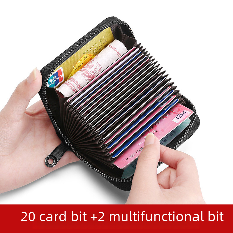Rfid مكافحة سرقة فرشاة مكافحة مغناطيسية جلد البقر حافظة للبطاقات المرأة جلدية سستة حامل بطاقة البنك متعددة بطاقة حامل بطاقة سعة كبيرة
