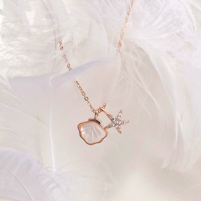 قلادة مطلية بالفضة على شكل قذيفة نجم البحر الشابة، تصميم متخصص للنساء في سلسلة الترقوة ذات المزاج البارد البسيط على الإنترنت