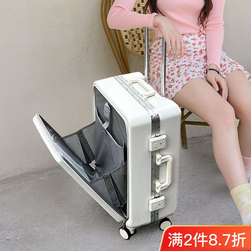حقيبة سفر بغطاء أمامي مفتوح من الألومنيوم للطلاب والطالبات على الطراز الكوري مقاس 20 بوصة كمبيوتر مفتوح من الجانب، قوية ومتينة
