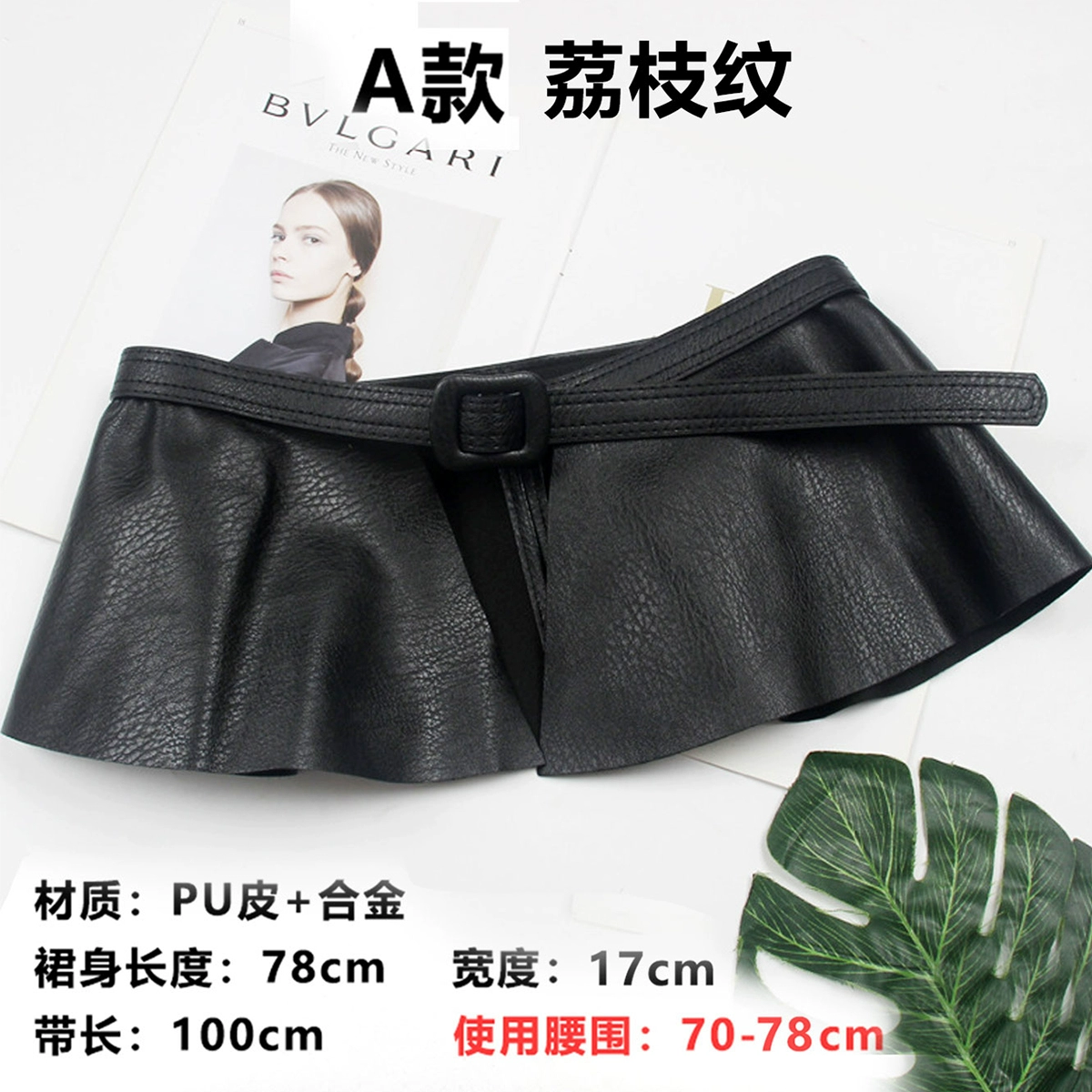 تنورة جلدية مكشكشة ذات حزام واسع للغاية مع حزام معقود مع تنورة مطوية وحزام أسود للنساء