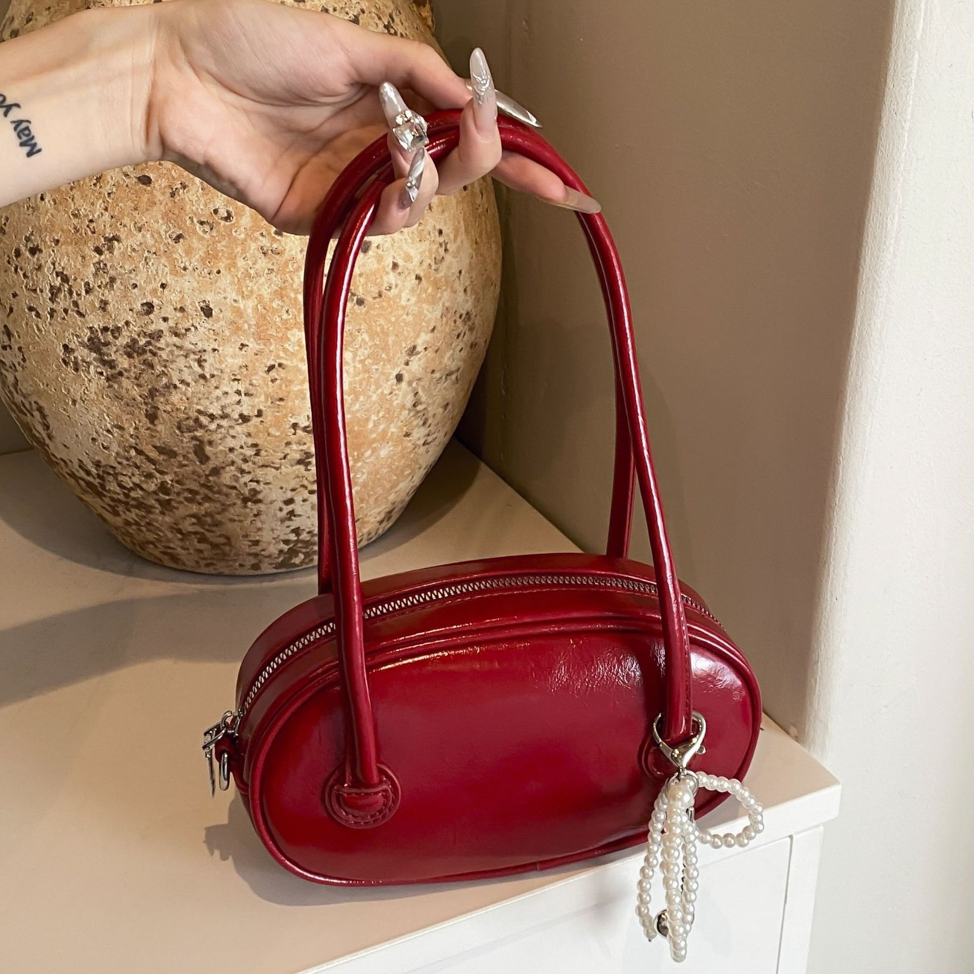 حقيبة يد صغيرة مستديرة على الطراز الكوري حقيبة يد على شكل كعكة 2024 صيفية جديدة غير رسمية مناسبة لجميع المباريات حقيبة كتف تحت الإبط