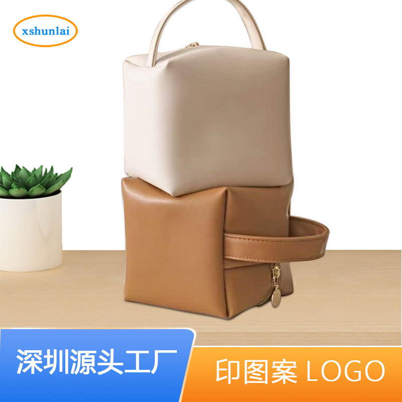 حقيبة مستحضرات التجميل الصغيرة المصنوعة من جلد البولي يوريثان مربعة الشكل، حقيبة تخزين صغيرة متعددة الوظائف للسفر، حقيبة أدوات الزينة مقاومة للماء