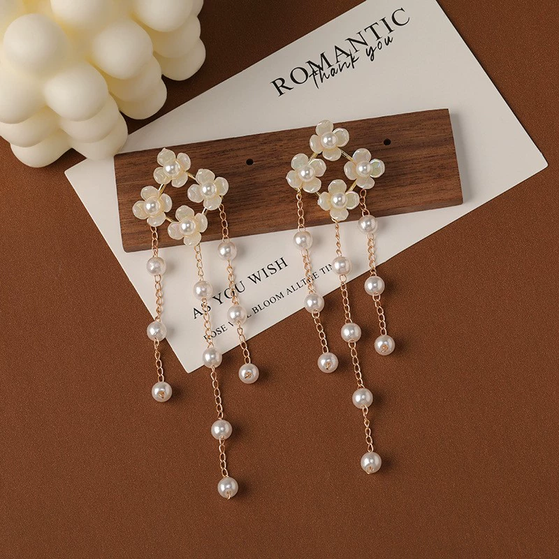 أقراط شرابة اللؤلؤ الرجعية للنساء مع أقواس المشاهير على الإنترنت