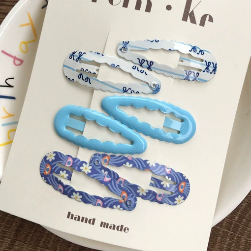 2024 إكسسوارات شعر الأطفال الكورية الجديدة بوم بنات حلوة منقوشة مطبوعة متموجة الانفجارات الجانبية BB بطاقة مشبك شعر