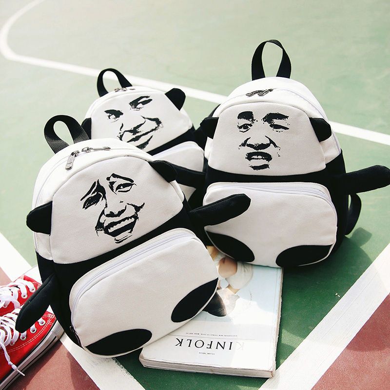 حقيبة ظهر كوميدية غريبة لطلاب المدارس الثانوية حقيبة مدرسية على شكل رأس الباندا حقيبة تعبير منسقة ذهبية قماش إبداعي شحن مجاني