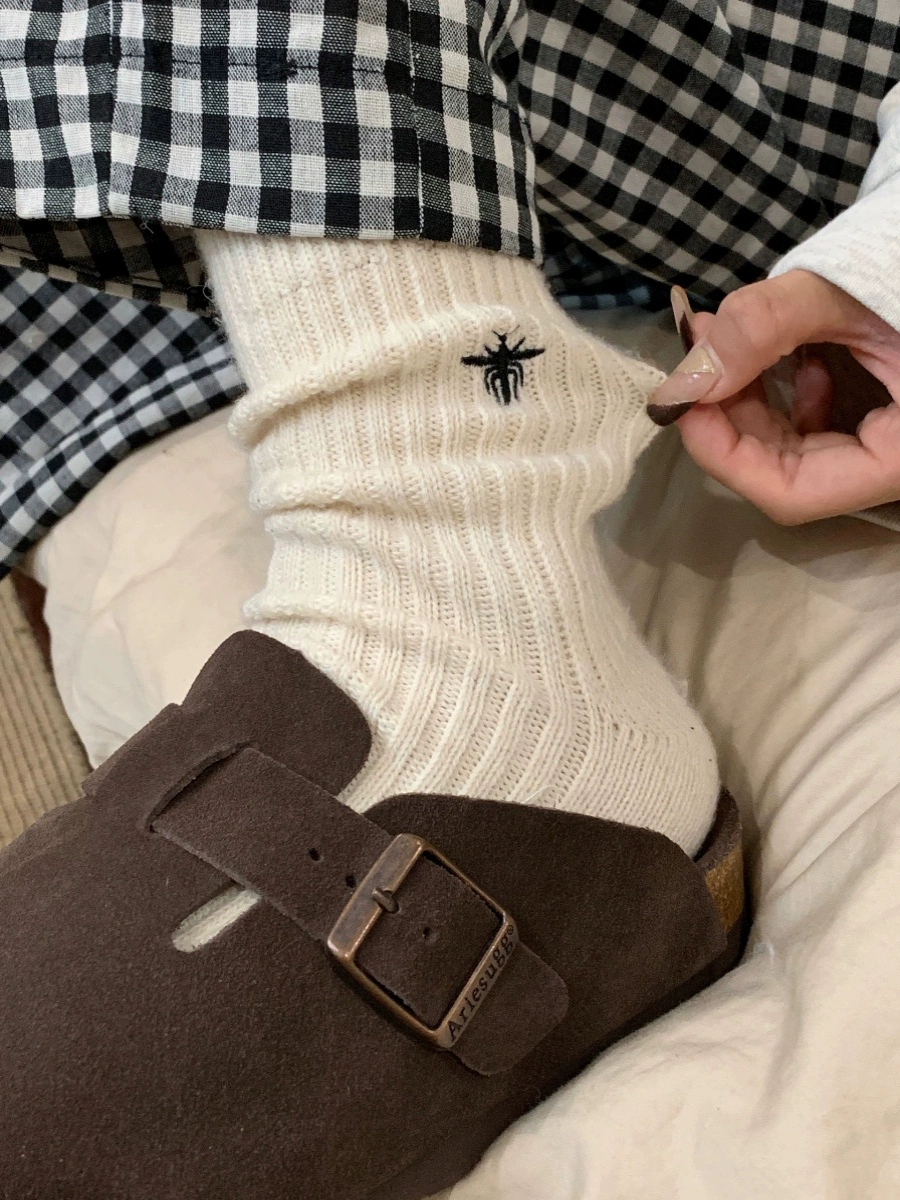 جوارب ليتل بي القطيفة الدافئة والحلوة لمنتصف الساق مطرزة