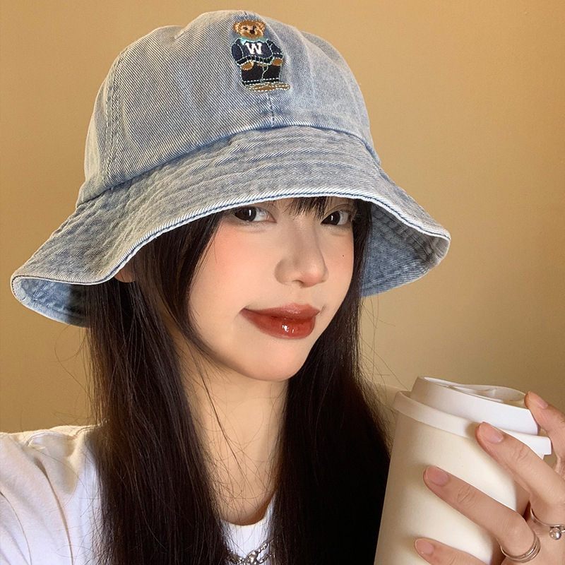 الدب الدنيم قبعة الصياد المرأة الربيع والصيف النمط الياباني رأس كبير ظلة الشمس حماية حوض قبعة الرجعية الوجه تظهر قبعة دلو صغيرة