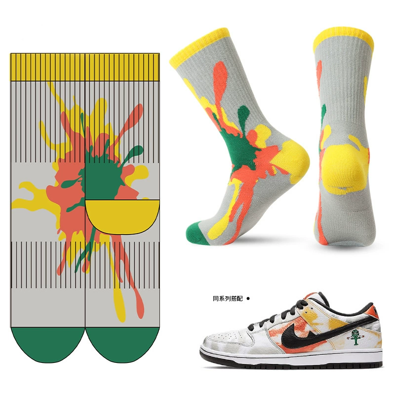 جوارب رياضية من قماش الجاكار القطني الأصلي للنساء والرجال عالية الجودة كاجوال وشخصية عصرية للجري وكرة السلة المشاهير AJ مع الأحذية والجوارب