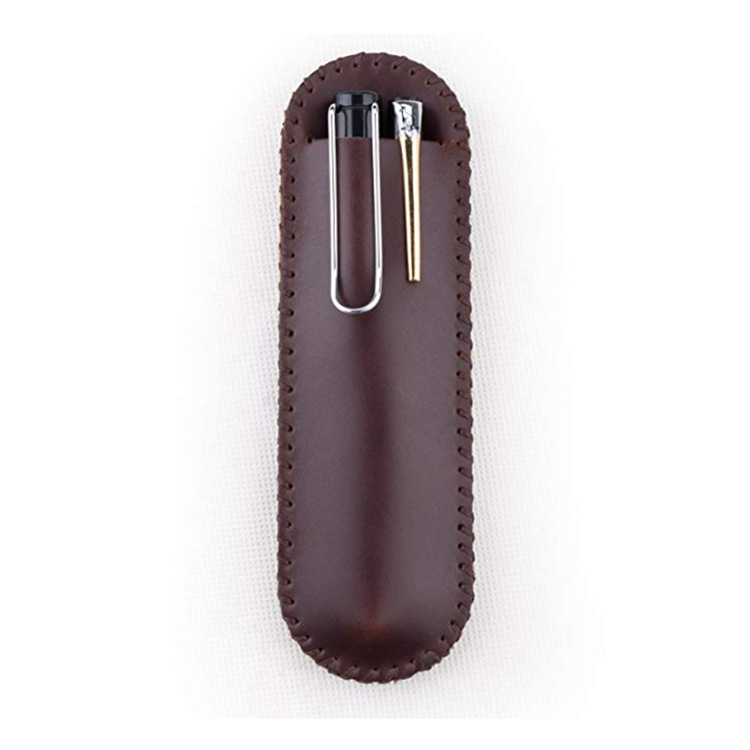 حافظة أقلام جلدية من جلد البقر مقلمة شخصية مصنوعة يدويًا ومخصصة وحافظة حماية لقلم الهدايا الإبداعية بشعار مخصص