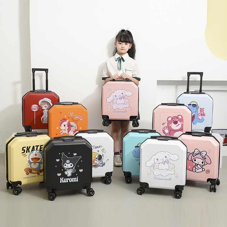 حقيبة أمتعة الأطفال للفتيات والأولاد الكورية اللطيفة بعجلات عالمية وشعار صندوق السفر بكلمة المرور