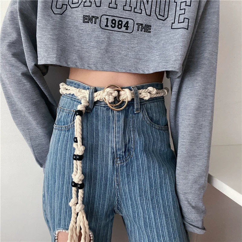 حزام نسائي عصري ورائع من حبل القنب ذو حلقة مزدوجة بإبزيم مزدوج