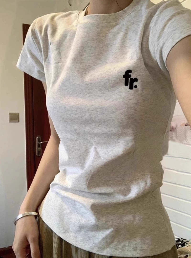 تي شيرت أمريكي ذو قصة ضيقة بأحرف بسيطة وأكمام قصيرة