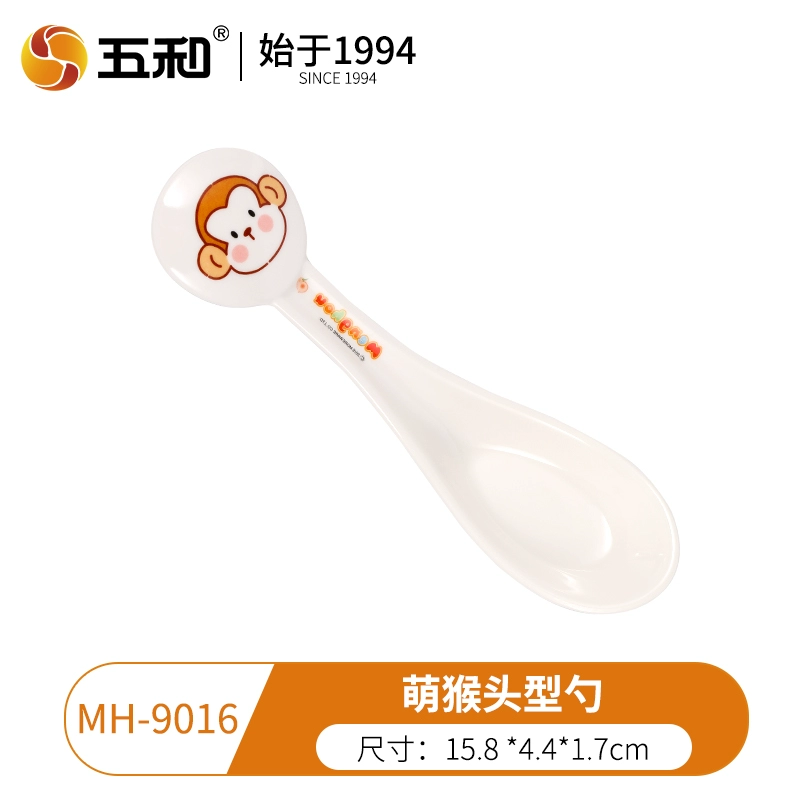 أدوات مائدة للأطفال على شكل قرد لطيف على شكل قرد من Wuhe ملعقة بلاستيكية من الميلامين ملعقة طعام تكميلية لطيفة ومبتكرة