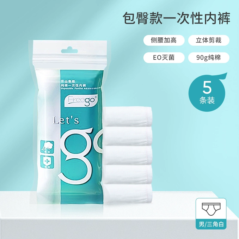 Freego ملابس داخلية من القطن الخالص للاستعمال مرة واحدة، نمط يغطي الورك، 5 قطع معبأة بشكل فردي، تعقيم EO، سفر يومي للاستعمال مرة واحدة بعد الولادة