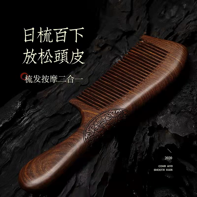 مشط خشبي طبيعي لفرد الشعر بأسنان كبيرة ومضاد للكهرباء الساكنة