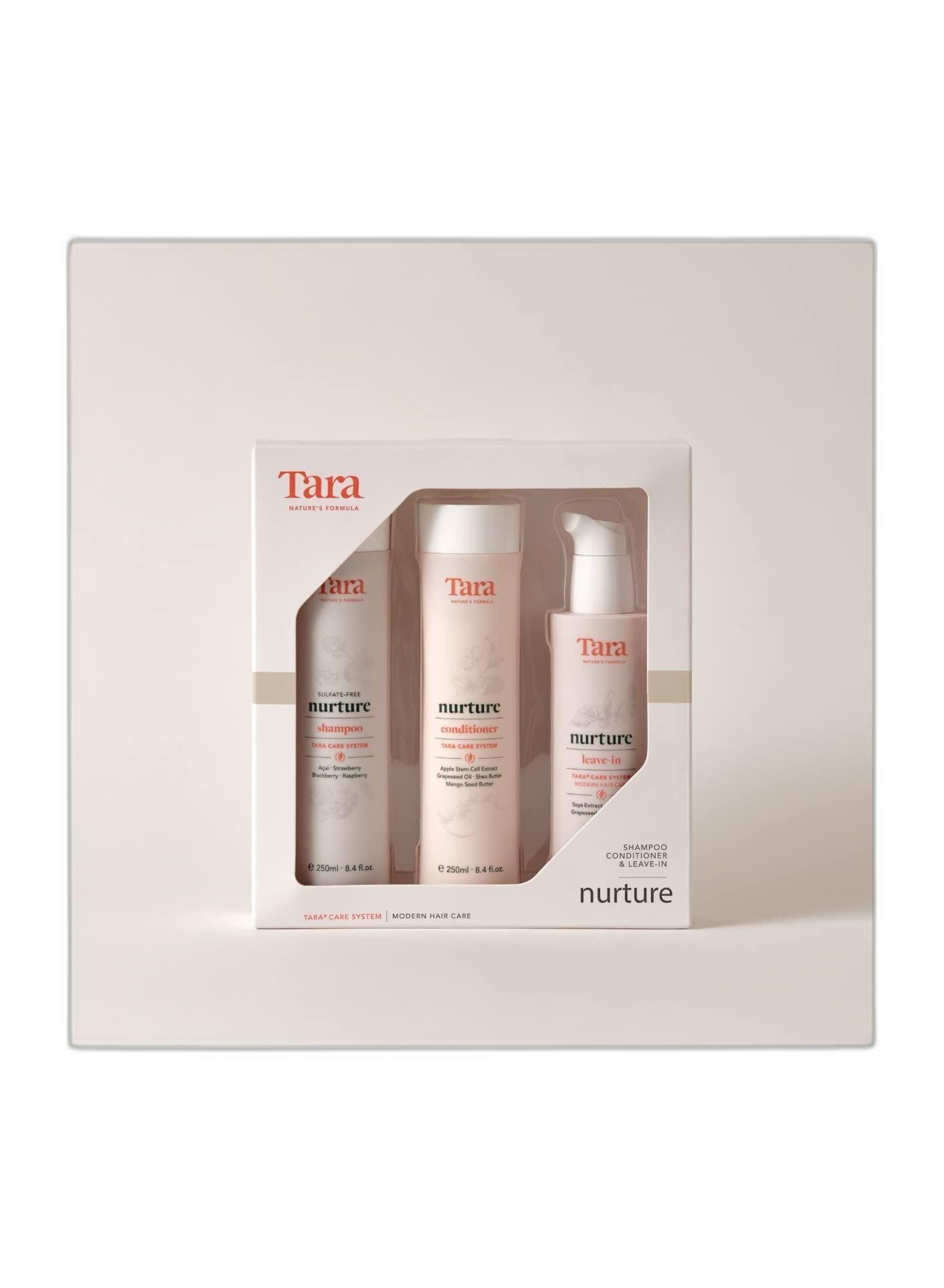 تريو العناية بالشعر من تارا – شامبو وبلسم يُترك على الشعر
