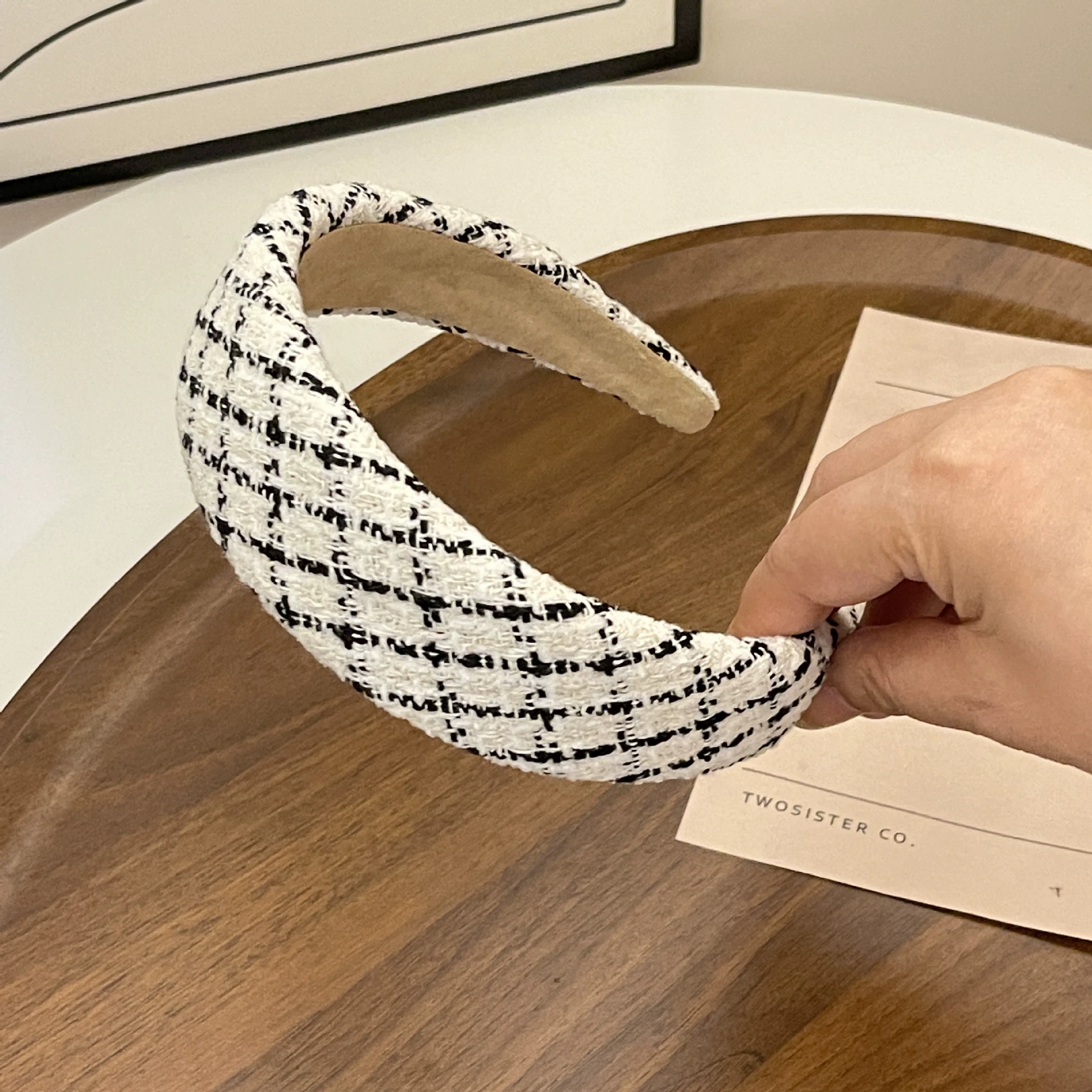 عصابة رأس محبوكة بخط سميك على الطراز الكوري باللونين الأسود والأبيض