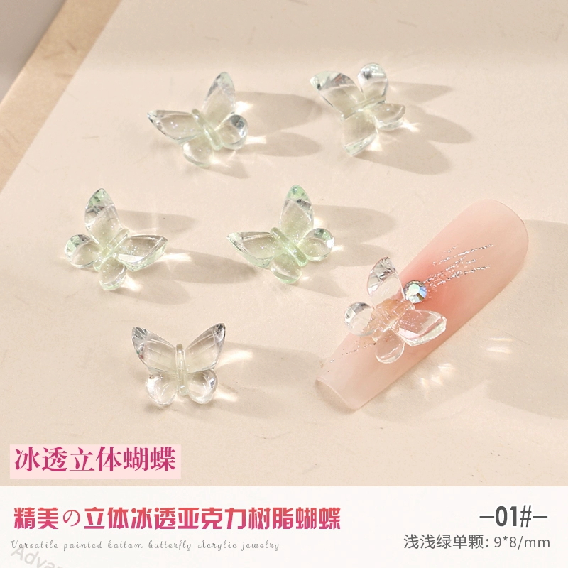 7 ألوان من المشاهير على الإنترنت، شفاف ثلاثي الأبعاد على شكل فراشة، مجوهرات أظافر من الأكريليك بلون شفاف، بريق لامع، زخرفة ماسية للأظافر