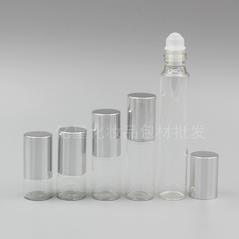 زجاجة عطر صغيرة من الزجاج الشفاف ذات كرة دوارة فضية لامعة