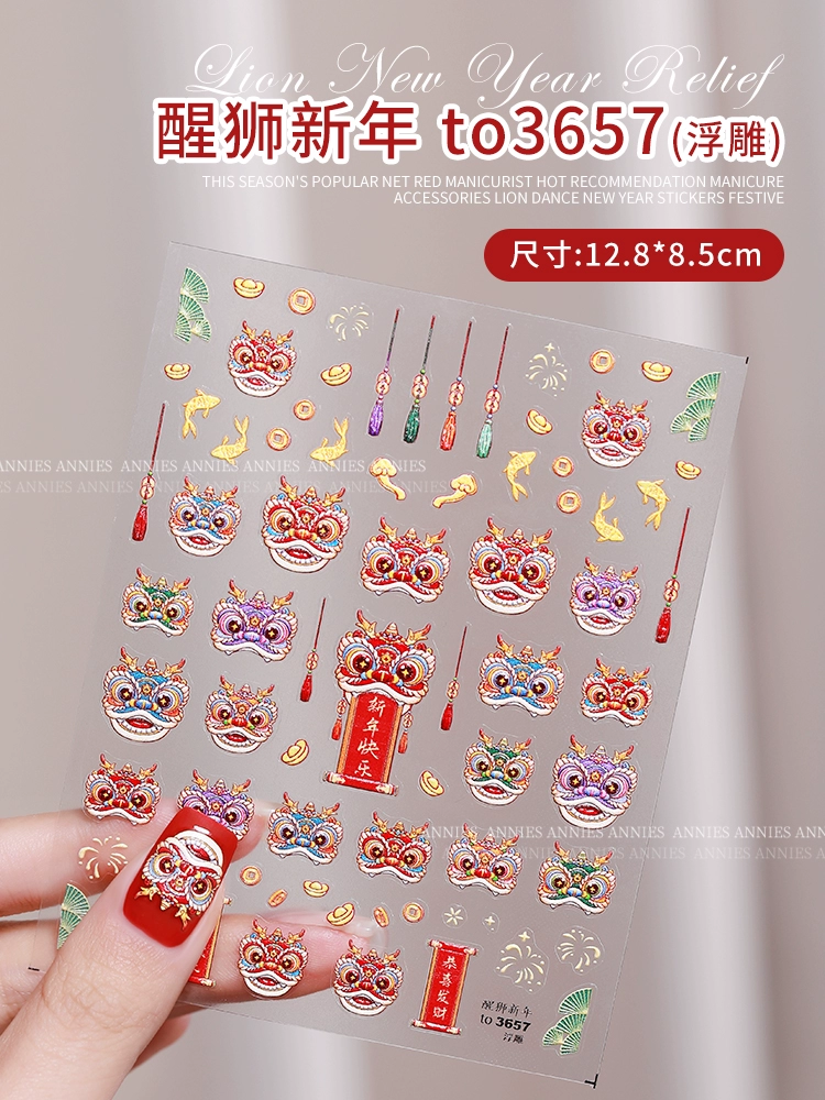 ملصقات منقوشة لعام 2024 التنين ، مانيكير رأس السنة الجديدة ، بقع الأظافر ، رقصة الأسد ، صحوة الأسد ، صنع الثروة ، زخارف سبيكة عيد الربيع