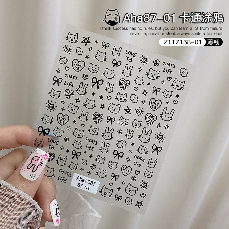 ملصقات فنية للأظافر ثلاثية الأبعاد على شكل رسوم متحركة على الجدران 2024 شارات جديدة لطيفة للقطط والجراء لتزيين الأظافر