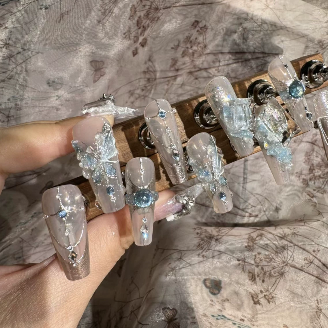 فراشة زرقاء ثلجية جميلة مصنوعة يدويًا من الماس اللامع اللامع