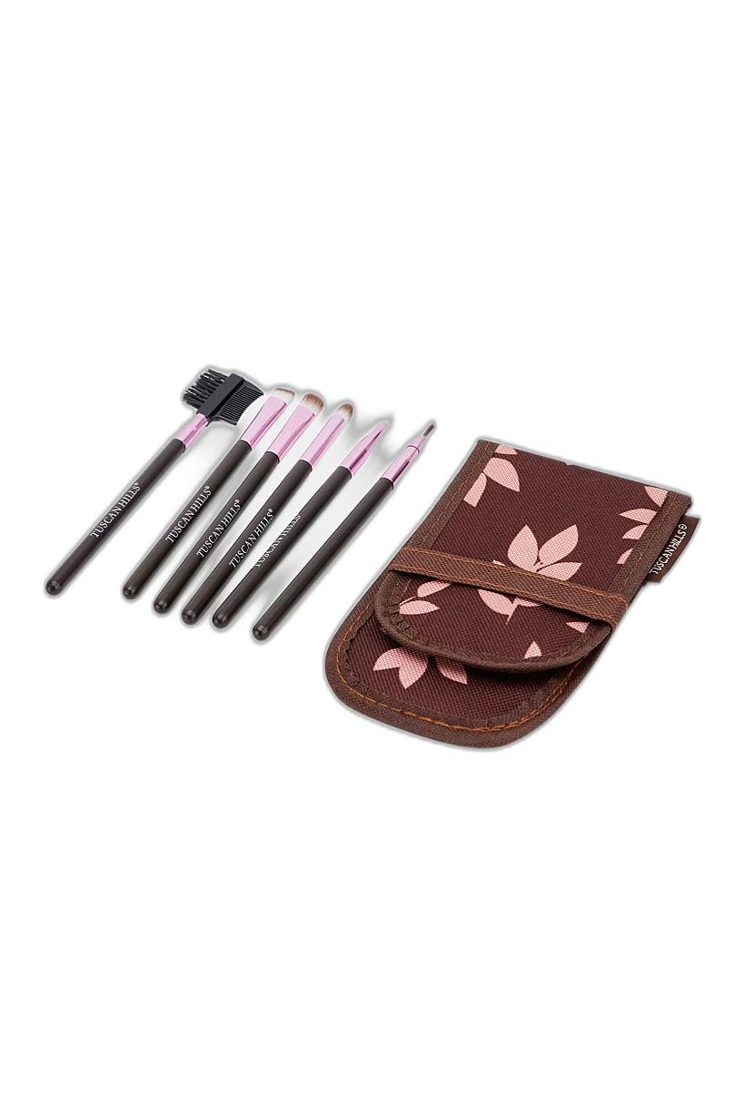 مجموعة فرش مكياج باللونين الأسود والوردي مع حقيبة سفر.
