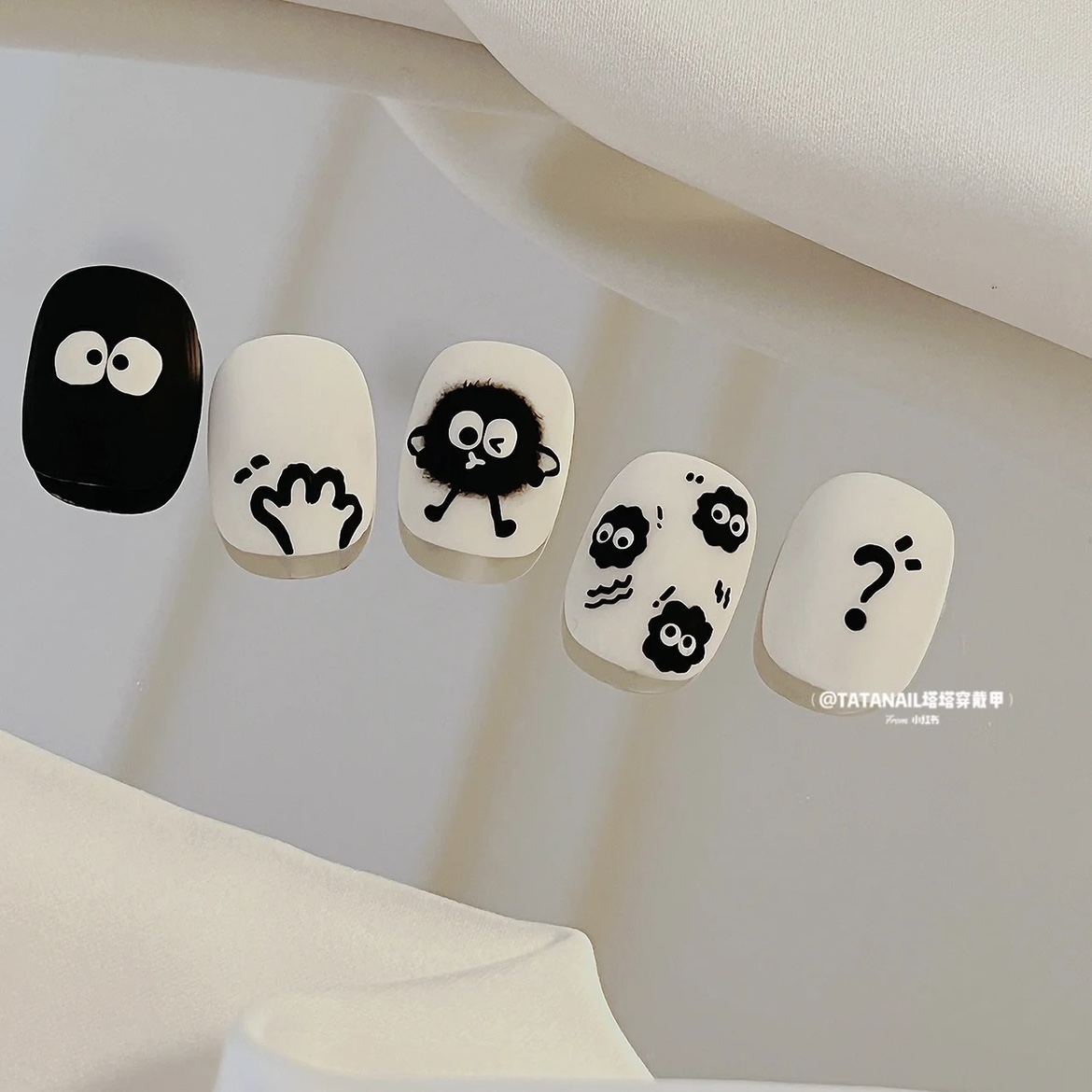 قوالب صغيرة |Ins Style قصيرة مرسومة يدويًا قوالب قطيفة لطيفة على شكل رسوم متحركة مانيكير أظافر نقية مصنوعة يدويًا يمكن ارتداؤها