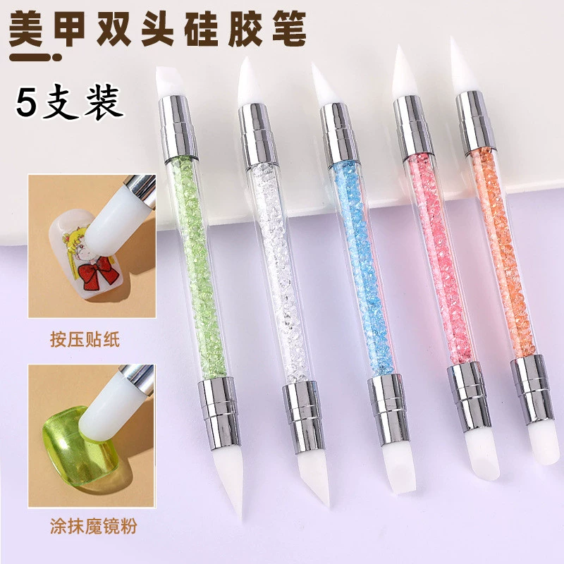 قلم سيليكون ذو طرف مائل وبودرة مرآة سحرية متعددة الوظائف مانيكير مدبب