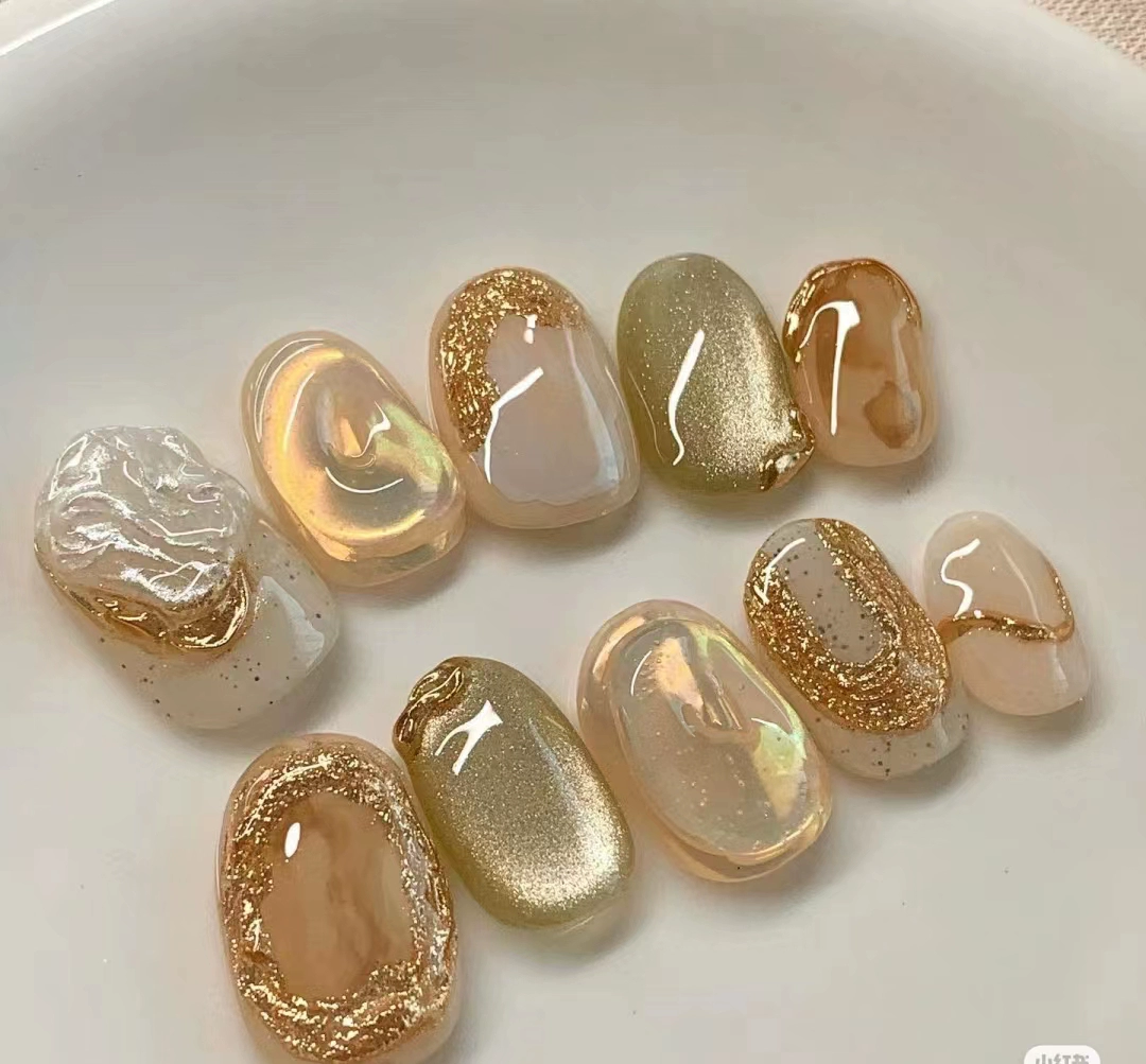 مانيكير مصنوع يدويًا منتج نهائي مذهب كهرماني عين القطة أورورا إنس ستايل مانيكير العلاج بالضوء مانيكير Xiaohongshu مانيكير
