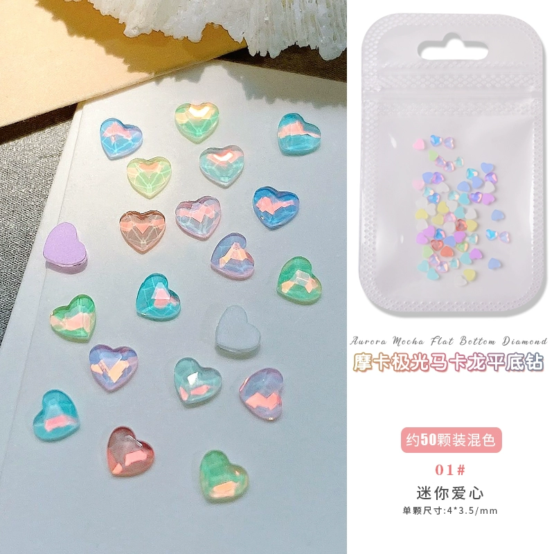 ماكرون لون الحلوى قلب صغير على شكل الماس 50 أظافر مانيكير
