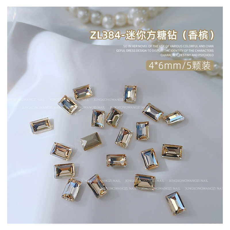 مانيكير صغير مدبب من الأسفل على شكل مكعب سكر ماسي بلون الشمبانيا والباستيل الأبيض