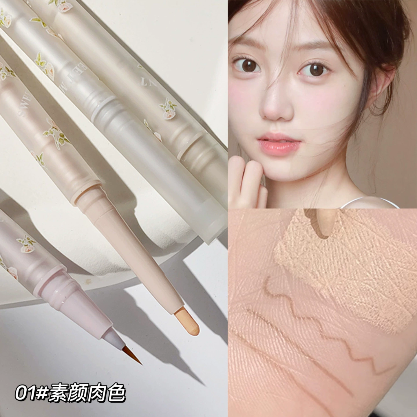 قلم دودة القز ذو ملمس بريء ورائع ذو طرفين، قلم لؤلؤي لتفتيح وكحل العيون، مزدوج الاستخدام، ملمس الأم باللون الوردي وحقيبة البكاء الصغيرة الرقيقة
