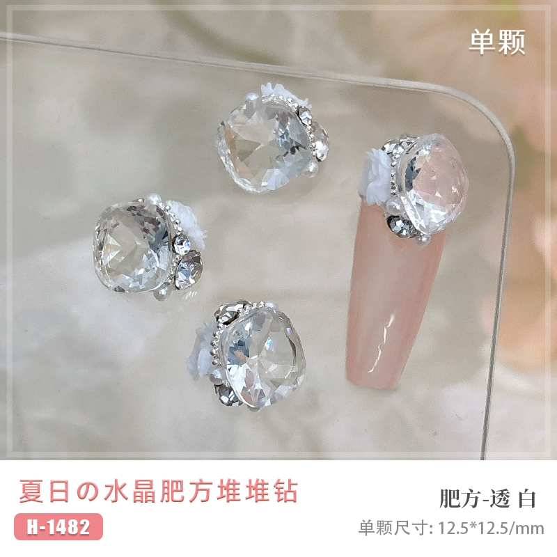 شفافة الجليد متعددة الأوجه مانيكير روز كاميليا الصلب الخرز اللؤلؤ الأسمدة مربع كومة الماس شفافة الأبيض الشمبانيا الأظافر تألق الماس والمجوهرات