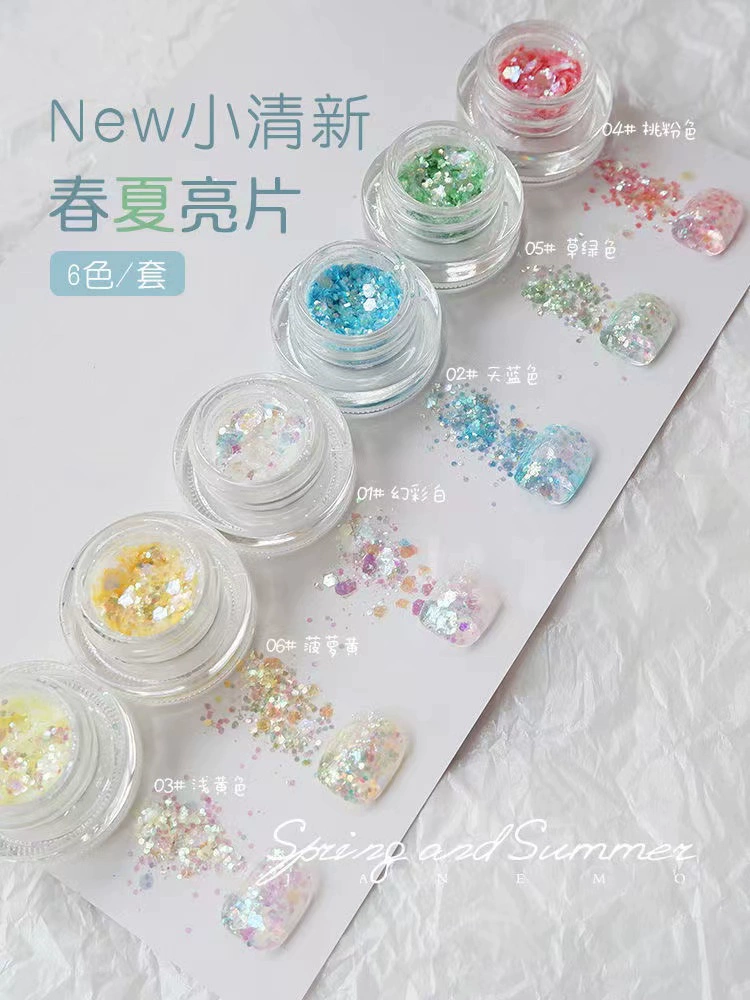 جليتر أظافر كوري بألوان الحلوى للربيع والصيف ممزوج بالجليتر