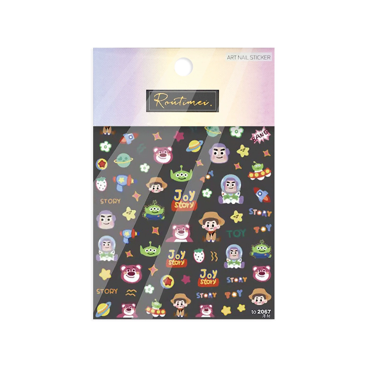 ملصق فني للأظافر منقوش عليه وحش كرتوني لطيف ثلاثي العيون