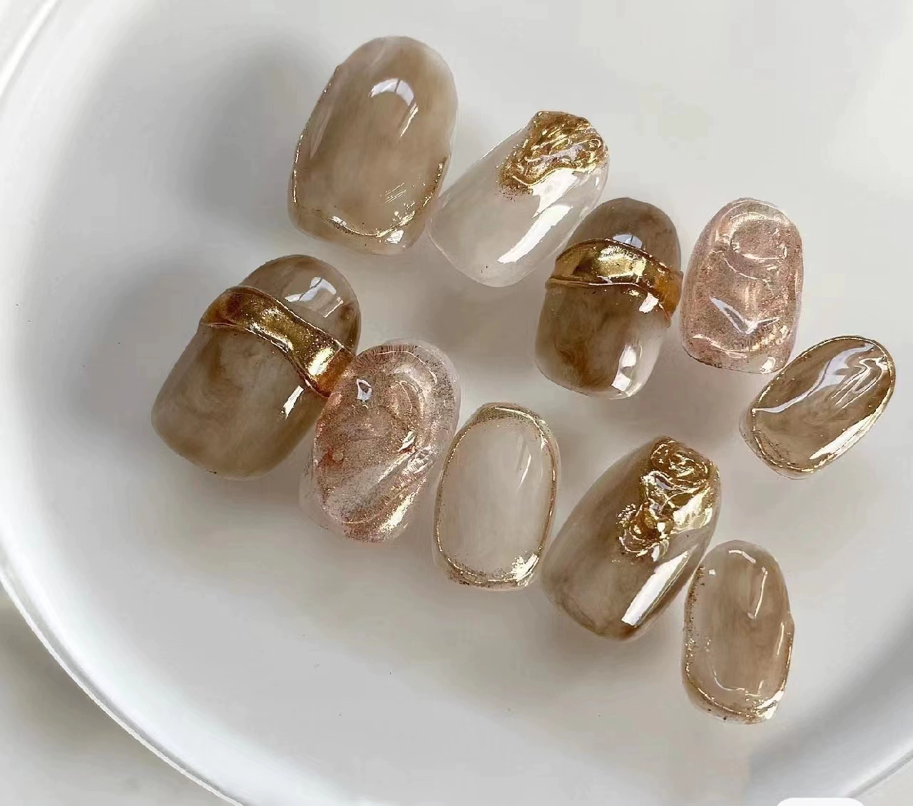 الأظافر التي يتم ارتداؤها يدويًا، والأظافر المزيفة، ومنتجات العناية بالأظافر بالضوء، وإضافات ميلارد باللون البني والرمادي الملطخ على الطراز الياباني المتقدم الملطخ القصير