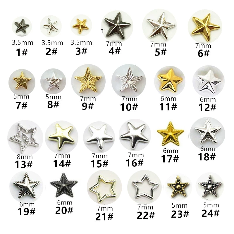 ملصق أظافر من سبيكة معدنية على الطراز الياباني بنجمة خماسية ريترو احترافية للعلاج بالضوء ملحقات فنية للأظافر