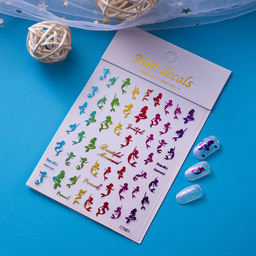 جنوب شرق آسيا حار حورية البحر ملصقات الأظافر الحلو النيون اللون حورية البحر لاصق 3D ملصقات الأظافر من الورق المقوى
