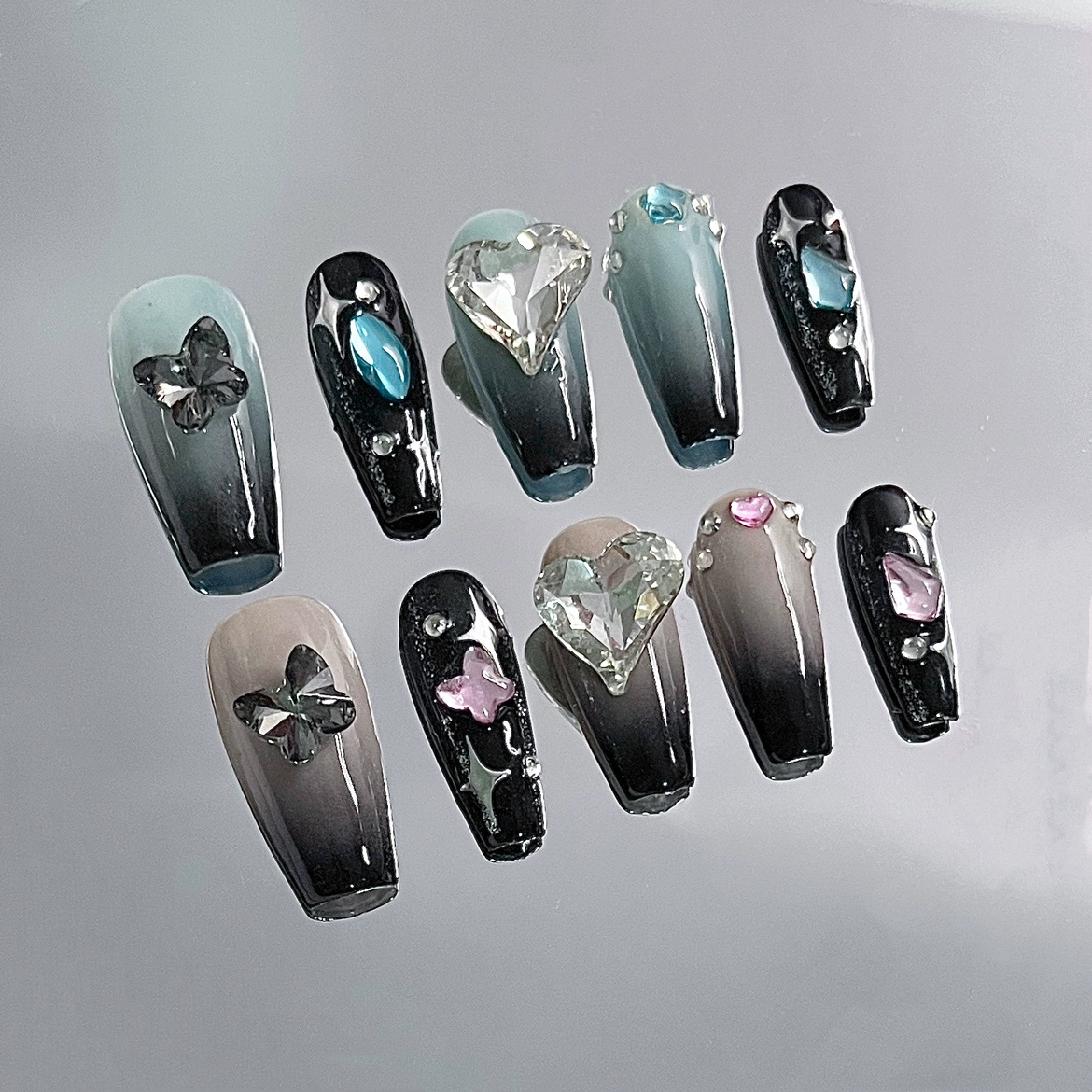 هوتي الألفية y2k مانيكير مصنوع يدويًا حلو ورائع على الإنترنت المشاهير المشهورين الراقية تبييض كسول متدرج أخضر مانيكير يمكن ارتداؤه
