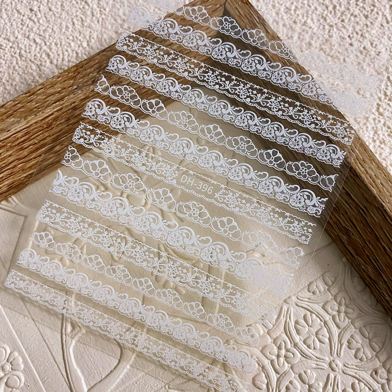 ملصقات دانتيل لفن الأظافر ملصقات أظافر دانتيل أبيض وأسود ثلاثية الأبعاد دانتيل أبيض مع دعامة لاصقة