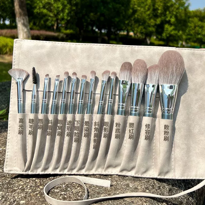 حقيبة جلدية سوداء مع 19 فرشاة مكياج راقية.
