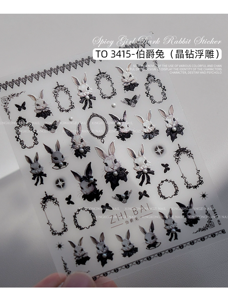 ملصق على الإنترنت لمشاهير الإنترنت على شكل أرنب داكن 2024، تصميم جديد مخصص لأرنب إيرل منقوش ثلاثي الأبعاد لتزيين الأظافر