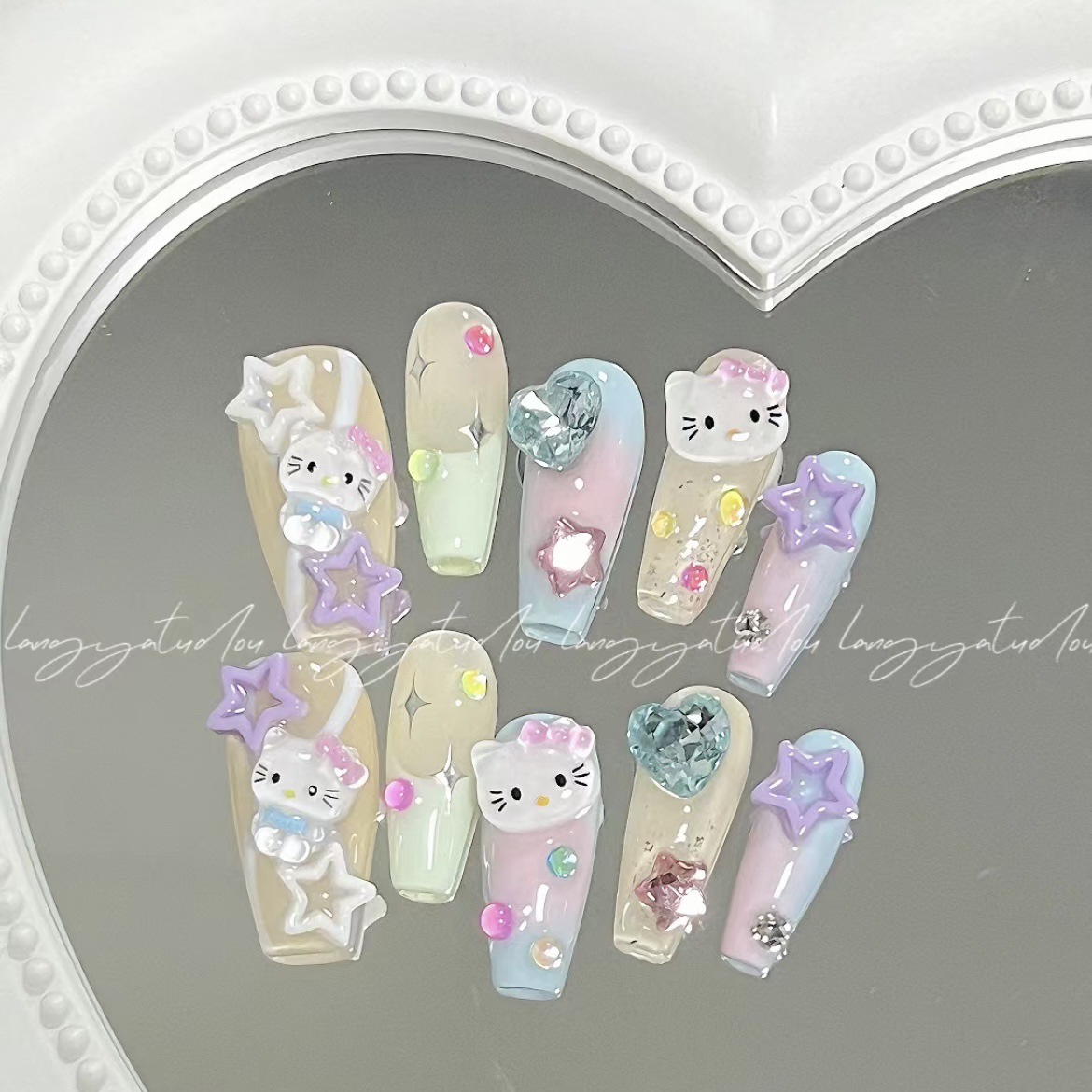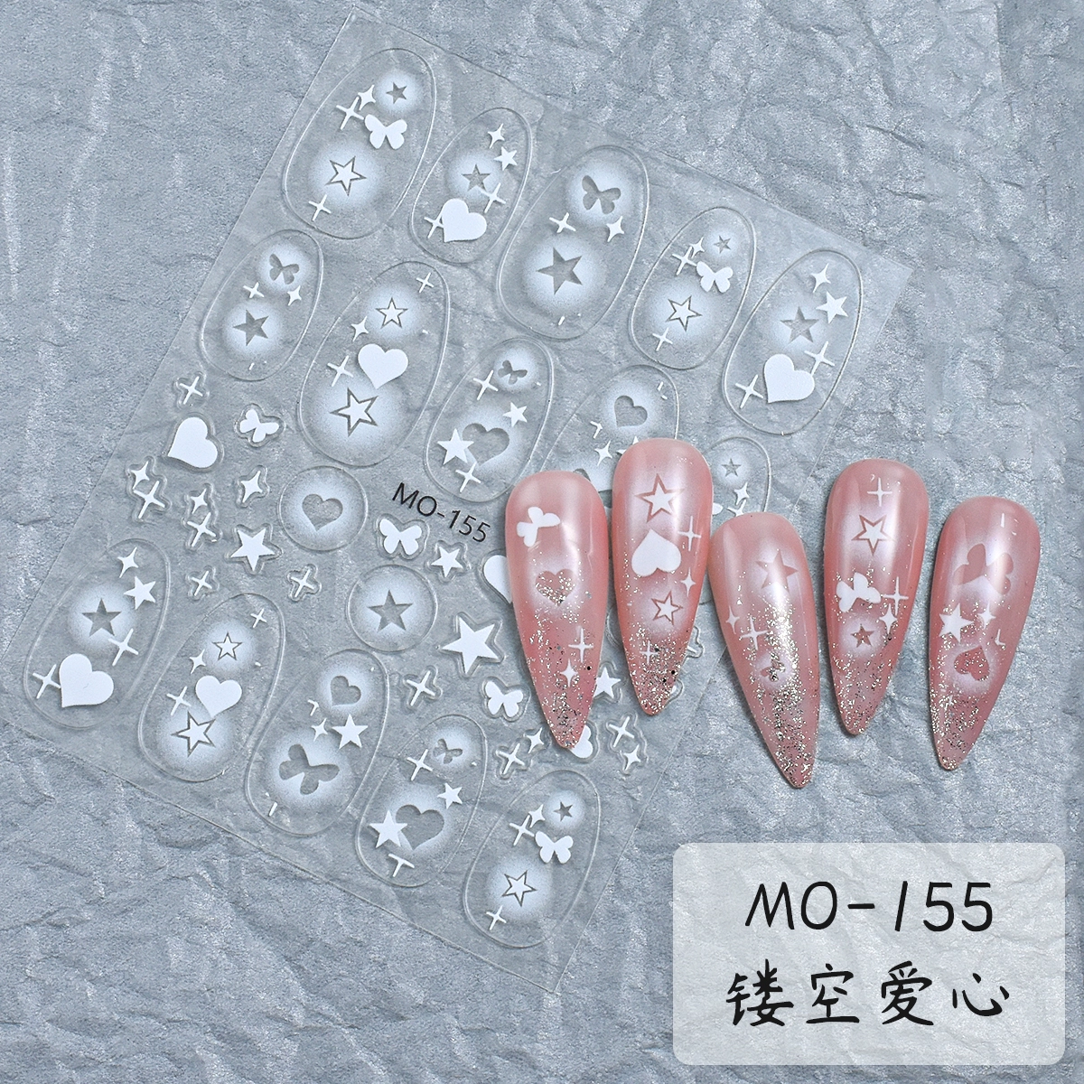 ملصق فني للأظافر على شكل حب مجوف، ملصق تزيين للأظافر منقوش ثنائي الأغراض على شكل نجمة الحب على شكل فراشة نجمية