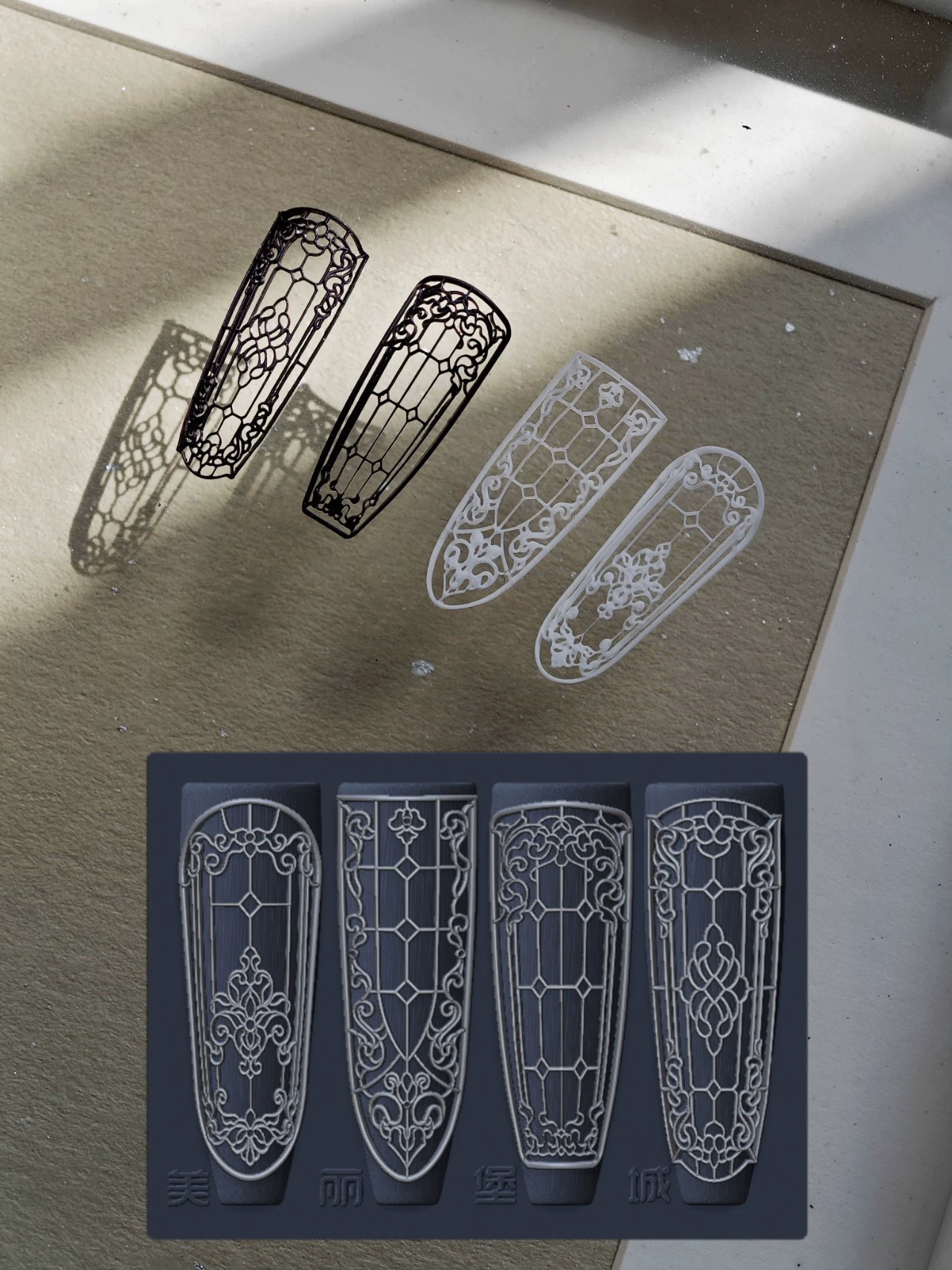 مانيكير النمط الصيني زهرة نافذة القوطية النمط الأوروبي زجاج نافذة زهرة قالب من السيليكون قلعة جميلة حقيقية نحت جلخ