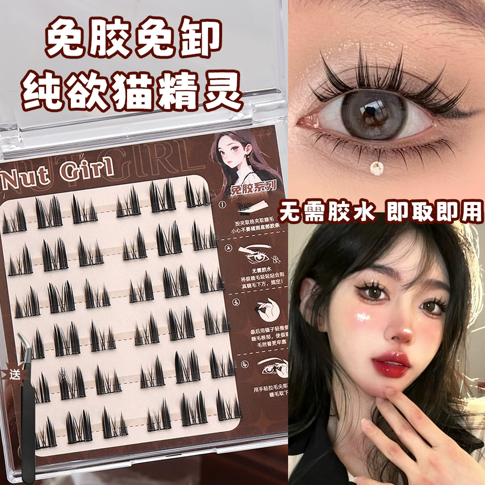 القط الطبيعي قزم خالية من الغراء الرموش الصناعية كسول سلسلة العنقودية واحدة المبتدئ تطعيم ذاتي الإناث محاكاة الرموش السميكة ملصق